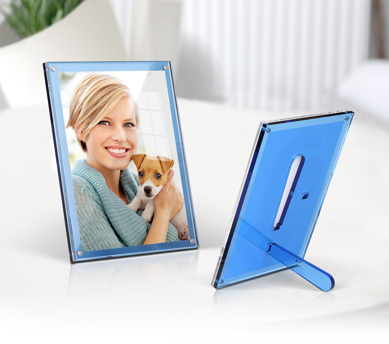 It is an interesting colorful acrylic magnetic photo frame, consisting of a transparent acrylic panel